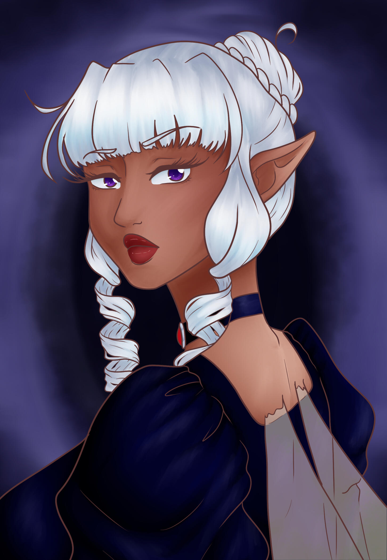 Name: Lillium de Castillo.Alias: ???.Culture / Race: Fey-Touched.Age: 26Sexuality: Demisexual.Marital Status: Engaged.Height: 5'2.Hair: Long, curly white, draping down her back.Eyes: Amethyst PurpleVoice: A soft, yet playful singsong, carrying a Sudvalkian accent.Appearance: A short statured, tanned Fey-Touched with curious eyes and sticks and leaves strewn through her hair. She carries vines along her arms, having grown up from the bark long her fingers.